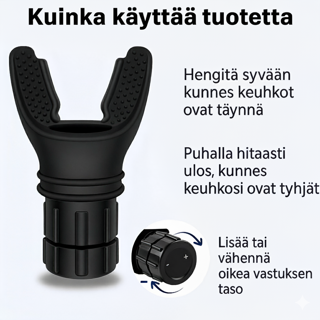 Tämä on loistava Airboost keuhkokapasiteetin kehittämiseen. Vaikka olen terve saan siitä silti paljon hyötyä. Jouduin aloittamaan ykköstasolta ja olen vasta nyt siirtymässä korkeampaan asetukseen. -